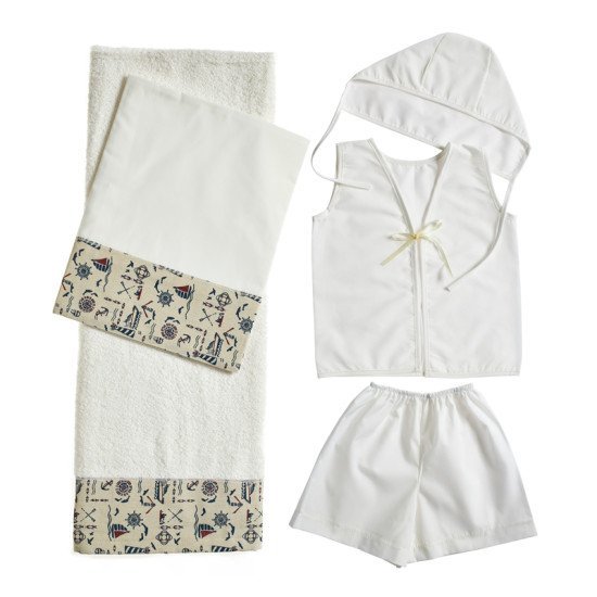 Σετ Βαπτιστικών Λαδόπανων για Αγόρι με θέμα “Άγκυρα” σε Λευκό Σιέλ συνδιασμό χρωμάτων.